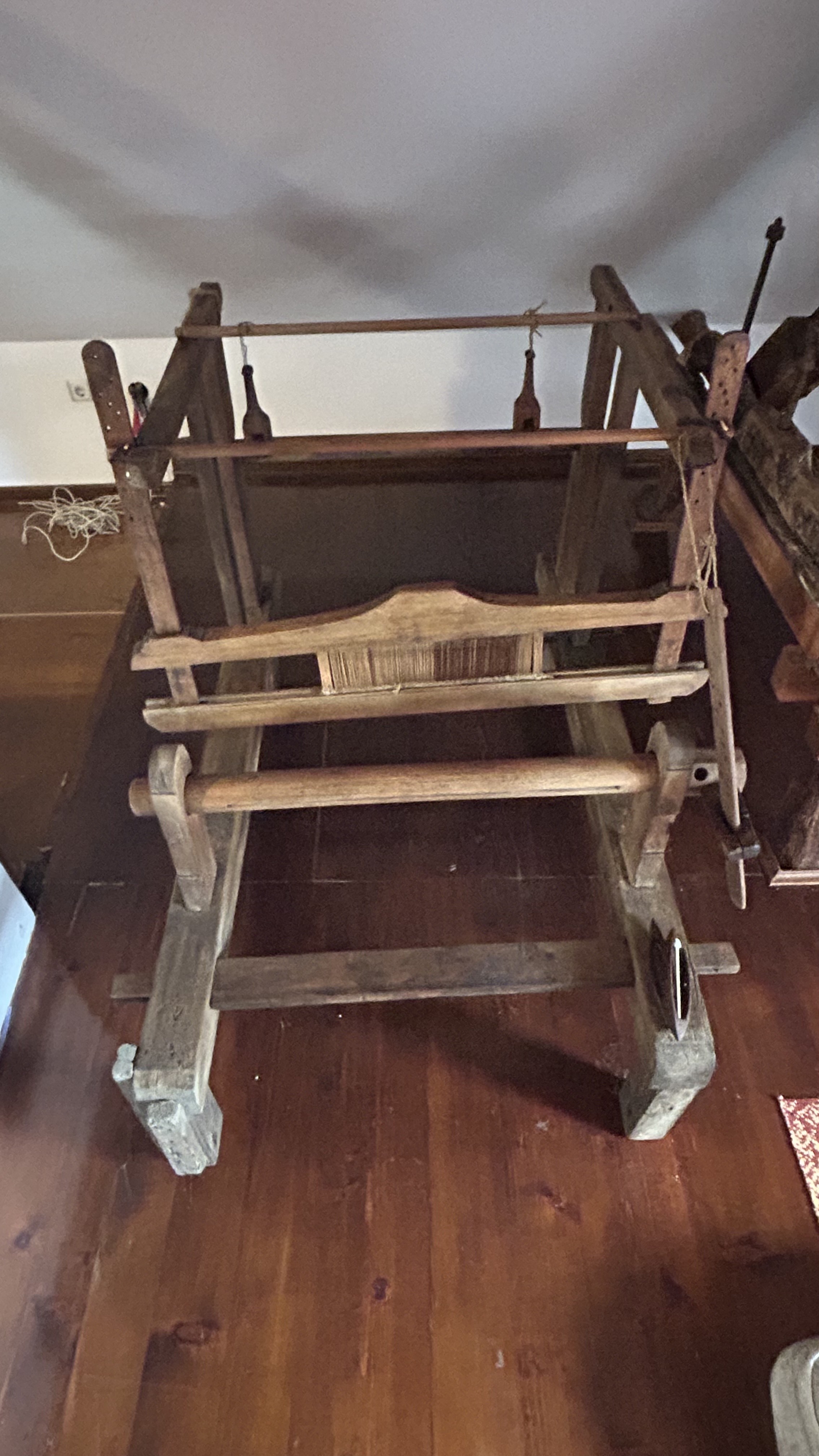 Преслица за вуну из средине 20. века, направљена од дрвета.
