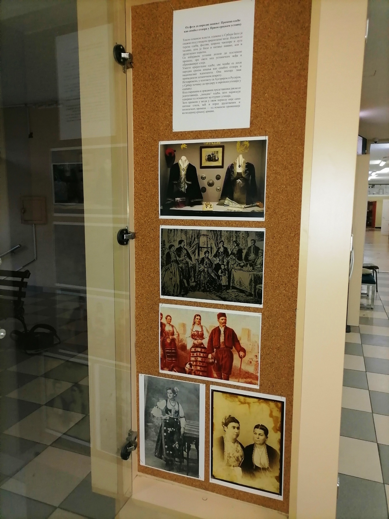 На изложби су представљени оригинални примерци и реконструкције ношње из периода Првог српског устанка: устаничка народна одећа као симбол отпора и националног идентитета, затим преостали оријентални елементи код дела становништва и први примери европеизоване одеће код државних представника и народа – предзнак културног и политичког преокрета ка модерној српској држави.