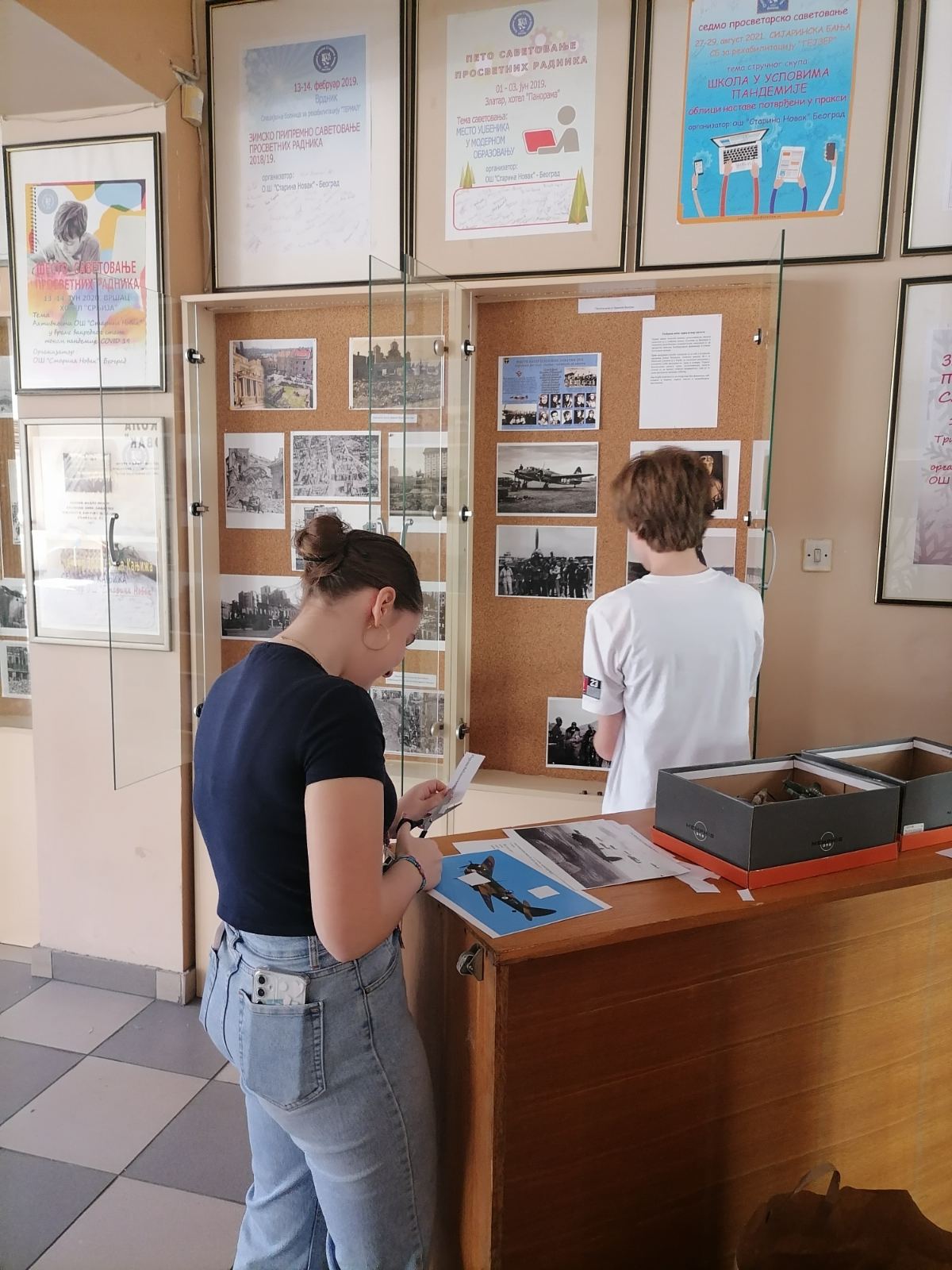 У припреми и постављању изложбе учествовали су ученици седмог и осмог разреда: Данило Стојановић, Миона Савић, Тијана Влајић, Милица Стевановић и Петар Максимовић, који је осмислио и дизајнирао плакат за изложбу. Посебно се истиче допринос ученика осмог разреда Константина Маричића и Павла Вулетића, који су израдили макете авиона. У реализацији изложбе учествовале су наставнице Татјана Бранковић и Марија Тодоровић.