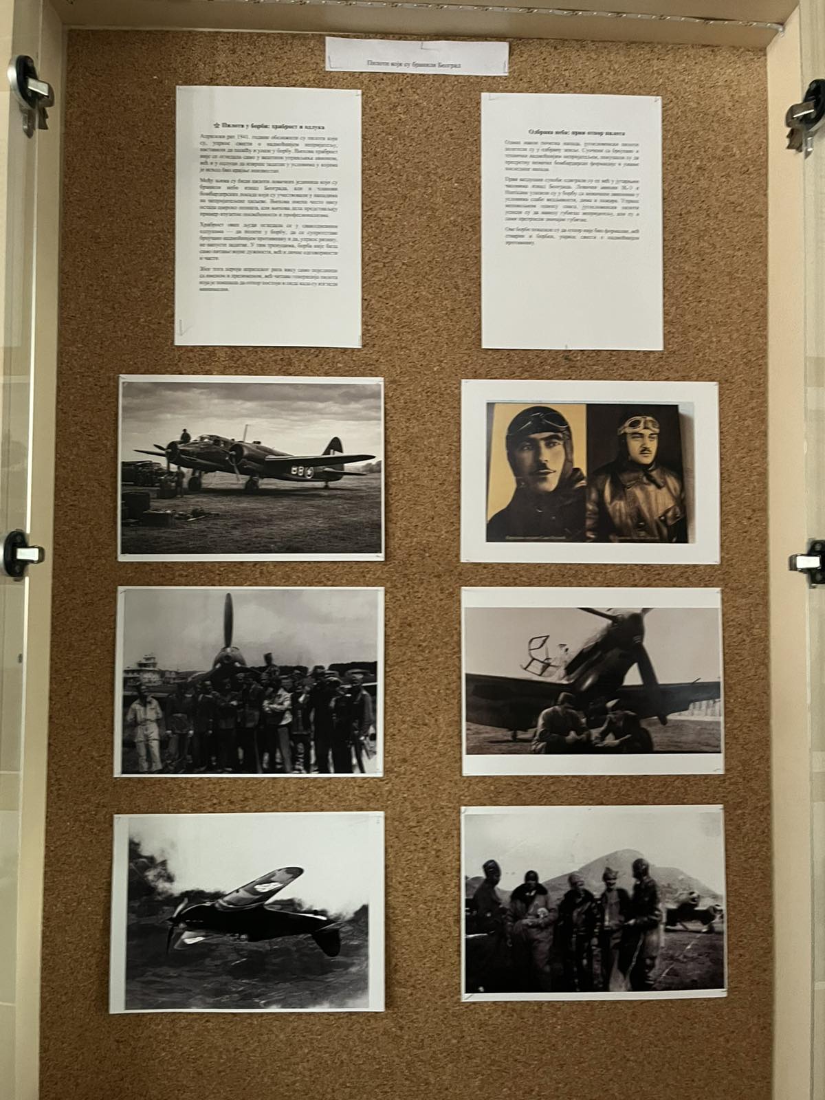 Изложба посвећена 85. годишњици Априлског бомбардовања Београда усмерена је на један кључни аспект овог догађаја – ваздухопловство и подухвате југословенских пилота у априлу 1941. године. Кроз пажљиво одабране фотографије, документе и пратеће текстове, изложба прати однос између разарања које је град претрпео и покушаја његове одбране из ваздуха.
