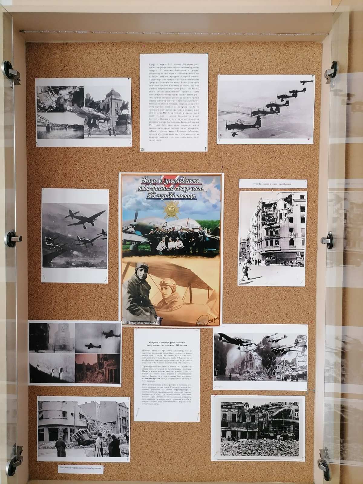 Изложба посвећена 85. годишњици Априлског бомбардовања Београда усмерена је на један кључни аспект овог догађаја – ваздухопловство и подухвате југословенских пилота у априлу 1941. године. Кроз пажљиво одабране фотографије, документе и пратеће текстове, изложба прати однос између разарања које је град претрпео и покушаја његове одбране из ваздуха.